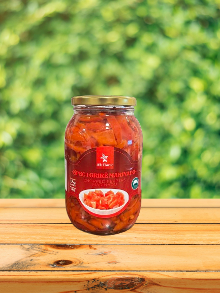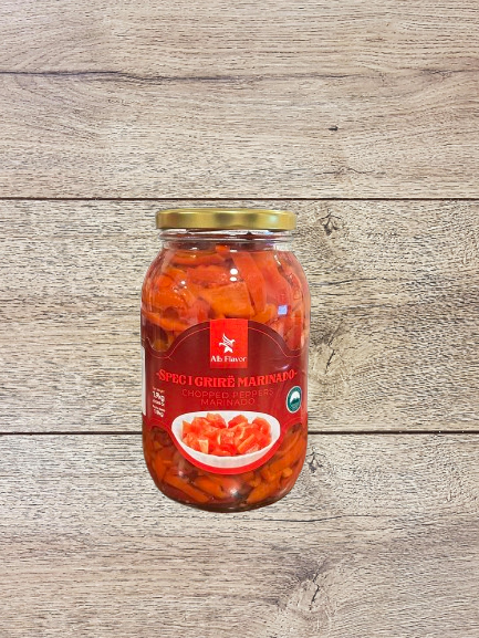 Sliced marinated peppers with a rich and tangy flavor, ideal for salads, sandwiches, or as a tasty side dish