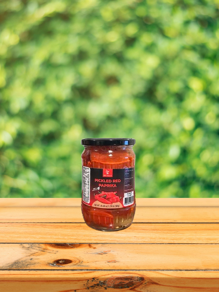 Flavorful pickled red peppers with a mild taste and tender texture, perfect as a side dish or ingredient in meals