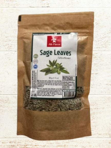 Aromatic, dried sage leaves with a warm, earthy flavor. Commonly used in cooking, herbal teas, and traditional remedies for digestion and throat comfort.